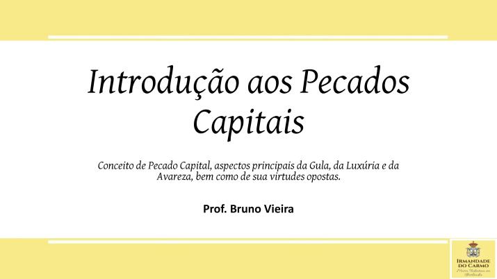Slide sobre os Pecados Capitais (1ª Parte)- Material da Formação de 25/08 por Diretoria de Comunicação26 de agosto de 20188 de novembro de 2018Deixe um comentário Como avisado na Formação de ontem (25), publicamos o slide utilizado em sala pelo Prof. Bruno, correspondente à 1ª parte do tópico Pecados Capitais. Clique na imagem e confira. Compartilhe: Compartilhar no Facebook(abre em nova janela) Facebook Compartilhar no X(abre em nova janela) 18+ Compartilhar no WhatsApp(abre em nova janela) WhatsApp Compartilhar no Telegram(abre em nova janela) Telegram Compartilhe no Linkedin(abre em nova janela) LinkedIn Compartilhar no Tumblr(abre em nova janela) Tumblr Compartilhar no Pocket(abre em nova janela) Pocket Compartilhar no Pinterest(abre em nova janela) Pinterest Compartilhar no Reddit(abre em nova janela) Reddit Imprimir(abre em nova janela) Imprimir Enviar um link por e-mail para um amigo(abre em nova janela) E-mail Curtir Carregando... Relacionado