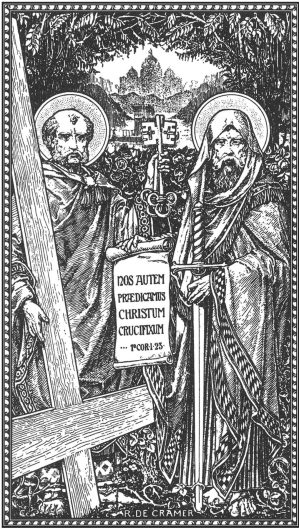 Com grande pompa celebra a Igreja romana a festa dos dois príncipes dos Apóstolos. Exceto a Oração que se ocupa de ambos os Santos, o formulário da Missa refere-se a S. Pedro, que goza da prerrogativa do Primado. Em compensação comemora-se S. Paulo no dia seguinte. As relíquias de S. Pedro acham-se em sua igreja em Roma onde, neste dia, toda a Cristandade se reúne em espírito, pelo menos.