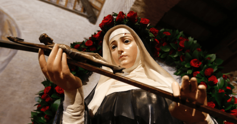 | Caeléstibus, Domine, pasti delíciis, súpplices te rogámus: ut, intercedénte sancta Rita, caritátis et passiónis tuae in méntibus nostris signa ferámus, et perpétuae pacis fructu júgiter perfruámur. Per D.N. | Confortados por vosso Alimento celestial, humildemente, Vos pedimos, Senhor, pela intercessão de Santa Rita possamos igualmente trazer em nosso coração os estigmas de vossa Caridade e de vossa Paixão, e gozar constantemente do fruto de uma paz perpétua. Por N. S. |