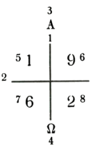 Em seguida, traça no alto da cruz a letra grega Alfa, em baixo a letra Omega, e entre os braços da cruz os quatro números que designam o ano corrente, dizendo: