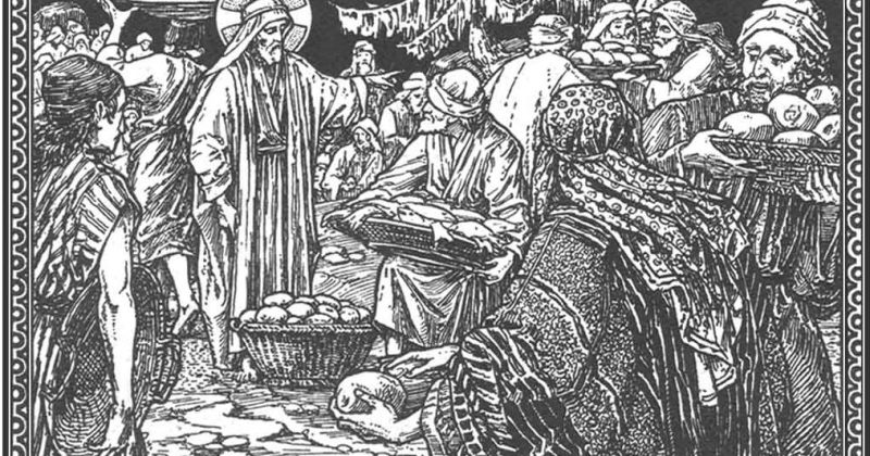 Sequéntia sancti Evangélii secúndum Marcum. In illo témpore: Cum turba multa esset cum Iesu, nec habérent, quod manducárent, convocátis discípulis, ait illis: Miséreor super turbam: quia ecce iam tríduo sústinent me, nec habent quod mandúcent: et si dimísero eos ieiúnos in domum suam, defícient in via: quidam enim ex eis de longe venérunt. Et respondérunt ei discípuli sui: Unde illos quis póterit hic saturáre pánibus in solitúdine? Et interrogávit eos: Quot panes habétis? Qui dixérunt: Septem. Et præcépit turbæ discúmbere super terram. Et accípiens septem panes, grátias agens fregit, et dabat discípulis suis, ut appónerent, et apposuérunt turbæ. Et habébant piscículos paucos: et ipsos benedíxit, et iussit appóni. Et manducavérunt, et saturáti sunt, et sustulérunt quod superáverat de fragméntis, septem sportas. Erant autem qui manducáverant, quasi quátuor mília: et dimísit eos. |