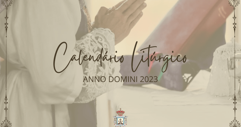 Publicamos o Calendário Litúrgico de 2023, editado anualmente pela Irmandade do Carmo, segundo as normas e rubricas aprovadas até 1962 pela Sé Apostólica, com o Próprio do Brasil, geral e de algumas localidades.