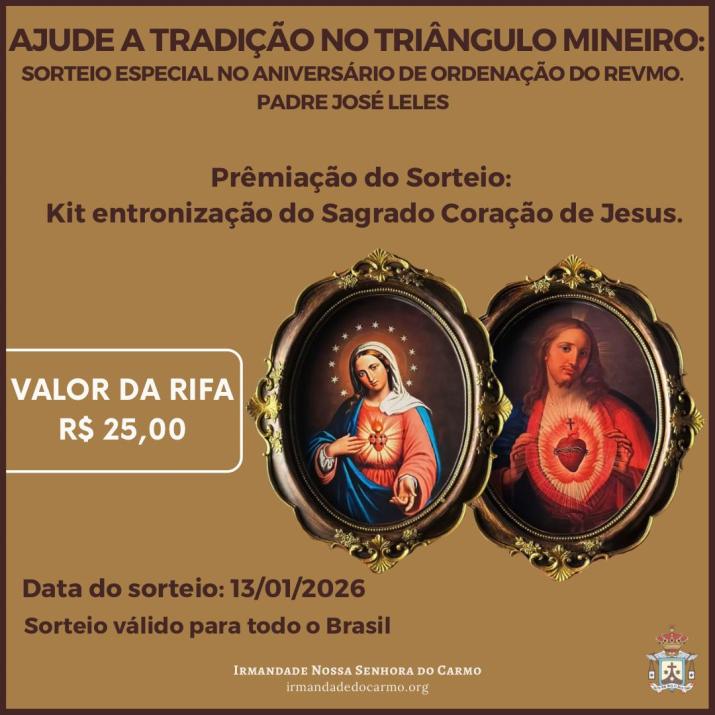 Nesse sentido, promoveremos um sorteio, até o dia 13 de janeiro de 2026, data em que o Revmo. Padre José Leles, que zelosamente dirige nosso apostolado, completará 37 anos de ordenação sacerdotal.