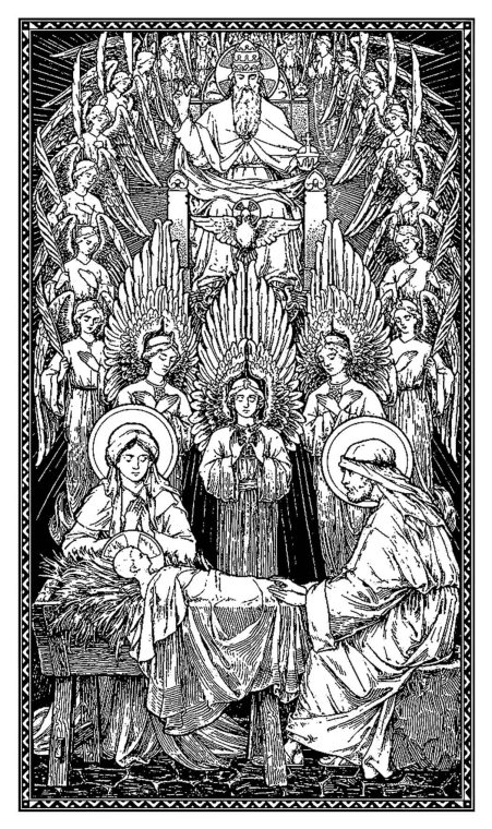In the beginning was the Word, and the Word was with God, and the Word was God. The same was in the beginning with God. All things were made by Him, and without Him was made nothing that was made: in Him was life, and the life was the Light of men; and the Light shineth in darkness, and the darkness did not comprehend it. There was a man sent from God, whose name was John. This man came for a witness, to testify concerning the Light, that all might believe through Him. He was not the Light, be he was to testify concerning the Light. That was the true Light, which enlighteneth every man that cometh into this world. He was in the world, and the world was made by Him, and the world knew Him not. He came unto His own, and His own received Him not. But as many as received Him to them He gave power to become sons of God, to them that believe in His Name, who are born not of blood, nor of the will of the flesh, nor of the will of man, but of God. (Here all kneel) AND THE WORD WAS MADE FLESH,