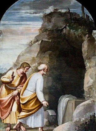 Naquele tempo: No primeiro dia que se seguia ao sábado, Maria Madalena foi ao sepulcro, de manhã cedo, quando ainda estava escuro. Viu a pedra removida do sepulcro. Correu e foi dizer a Simão Pedro e ao outro discípulo a quem Jesus amava: Tiraram o Senhor do sepulcro, e não sabemos onde o puseram! Saiu então Pedro com aquele outro discípulo, e foram ao sepulcro. Corriam juntos, mas aquele outro discípulo correu mais depressa do que Pedro e chegou primeiro ao sepulcro. Inclinou-se e viu ali os panos no chão, mas não entrou. Chegou Simão Pedro que o seguia, entrou no sepulcro e viu os panos postos no chão. Viu também o sudário que estivera sobre a cabeça de Jesus. Não estava, porém, com os panos, mas enrolado num lugar à parte. Então entrou também o discípulo que havia chegado primeiro ao sepulcro. Viu e creu. Em verdade, ainda não haviam entendido a Escritura, segundo a qual Jesus devia ressuscitar dentre os mortos.